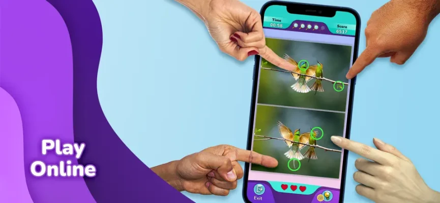 - Try to find 5 differences in picture in the time allowed, search for small invisible differences.
