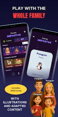 👨👩👧👦 Kids Mode included, designed especially for children and families. Play a safe and adapted version of the classic impostor game with: