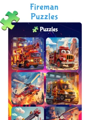 - 10 Real, high quality puzzles for 3 difficulty level with fire trucks, helicopter and fire brigade