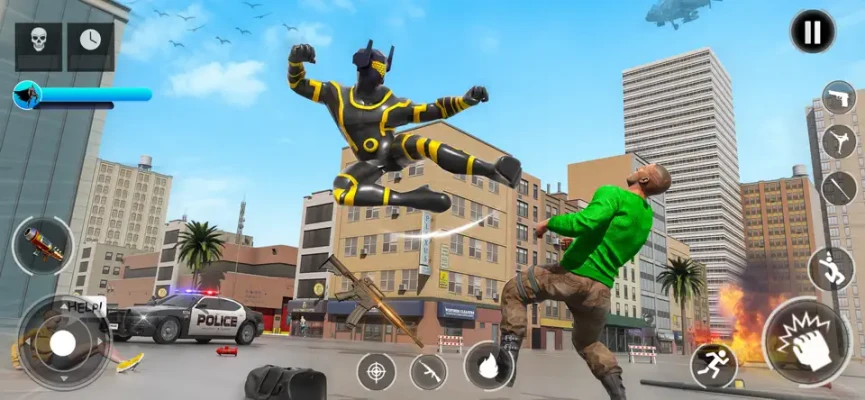 In Flip Hero Open World Game where player can swing very fast, use different weapons and can show driving skill of different vehicles, tank, helicopter etc in open world. Flip Hero Open World Game Features: Realistic driving with easy on-screen controls Amazing sounds of Vehicles. Beautiful and realistic graphics.