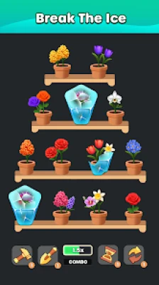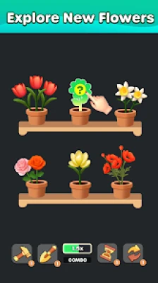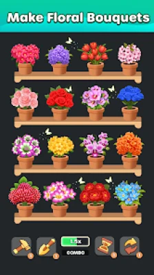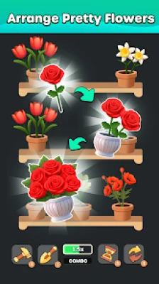 HOW TO PLAY: Sort three identical flowers onto the same shelf until all shelves are clear.