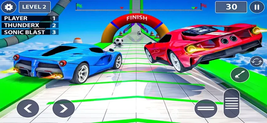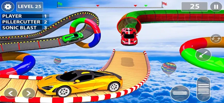 • Extreme Sky Ramps & Epic Jumps Prepare for the wildest car jumps and mid-air flips as you race through mind-bending ramps suspended in the sky. Test your reflexes, control your descent, and land with precision — or watch your car explode in spectacular fashion! • Addictive Gameplay with Realistic Controls Master your timing, balance, and acceleration as you race across floating ramps and conquer challenging obstacles. Whether you're a casual player or a seasoned stunt driver, Sky Race offers smooth and responsive controls for every skill level. • Unlock a Garage of Sky Beasts Drive more than just cars — unlock monster stunt machines built for air domination! Each vehicle has unique speed, handling, and stunt potential. Customize and upgrade your favorites to conquer harder levels and fly further. • Vibrant 3D Environments Experience stunning visuals with beautifully designed tracks floating high above the earth. From futuristic sky cities to glowing night ramps, every level offers a fresh and exciting environment to explore. • Challenging Missions & Endless Fun Complete daring stunt missions, beat time challenges, and prove you’re the ultimate sky racer. Or go freestyle and enjoy endless fun jumping, flipping, and racing to your heart’s content! If you crave extreme speed, big air, and jaw-dropping jumps, then Flying Car-Ramp Stunt Race Pro is your next big thrill. Download now and become the ultimate stunt champion of the skies!