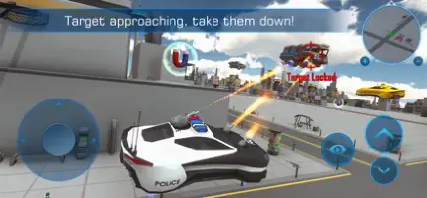 Fly your car in the huge future city, find amazing vehicle power-ups like bubble shields to deflect bullets, an atomizer to shrink your flying car so small to evade the gunfire, system overdrive for non-stop action to unload all your gunfire!