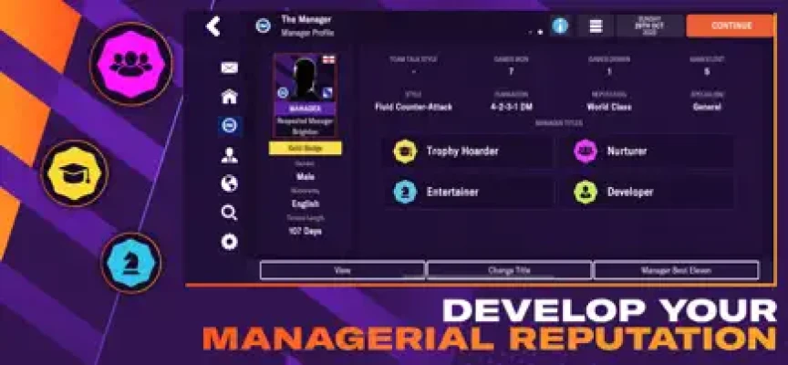 Earn reputation titles as you progress through your career based on your tactical approach, personality and transfer decisions. If you’ve got a reputation for developing young talent, your club may be the ideal destination for an in-demand wonderkid.