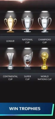 • Football game competitions - participate in competitions like: Champions Cup, Continental Cup, National Cup, Super Cup, World Nations Cup;