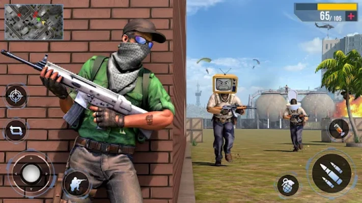 The more you win, the better you play. Your skills are the key to triumph, so gear up, and conquer the real commando secret mission. Landing by parachute onto the FPS battlefield, make a strategy, eliminate enemies, collect arsenals, maintain health, and complete missions within specific timeframes across diverse locations.