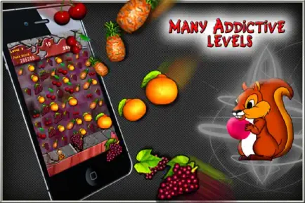- Animated squirrels clears all fruits in a row or column, if you excite them with a nice combo of fruits adjacent to them