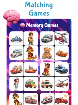 Another amazingly cool feature to the emergency games free for kids makes it even more awesome then just matching your little boy must find the icons that link for their match choices! And when they do make a linked match the little emergency rescue game shows them the link. This important element, and the matching itself, provides a real educational bonus and playing hospital ambulance games free also promotes: