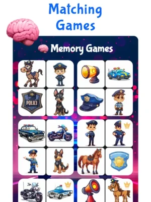 Another amazingly cool feature to the police games for free makes it even more awesome then just matching- your little cop must find the icons that link for their match choices! And when they do make a linked match the little police games shows them the link. This important element, and the matching itself, provides a real educational bonus and playing Cop Games For Kids Free also promotes: