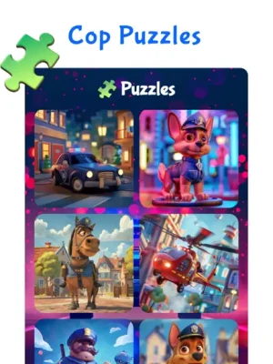 - 6 Real, high quality puzzles for 3 difficulty level with helicopter, police cars, police horse and motorcycle