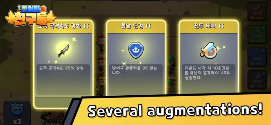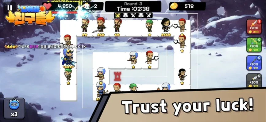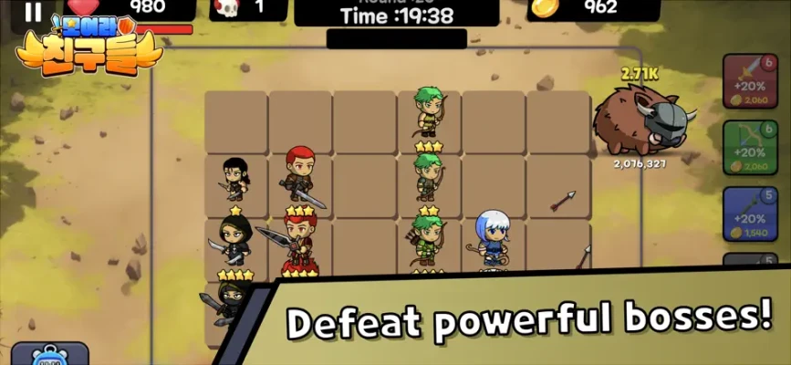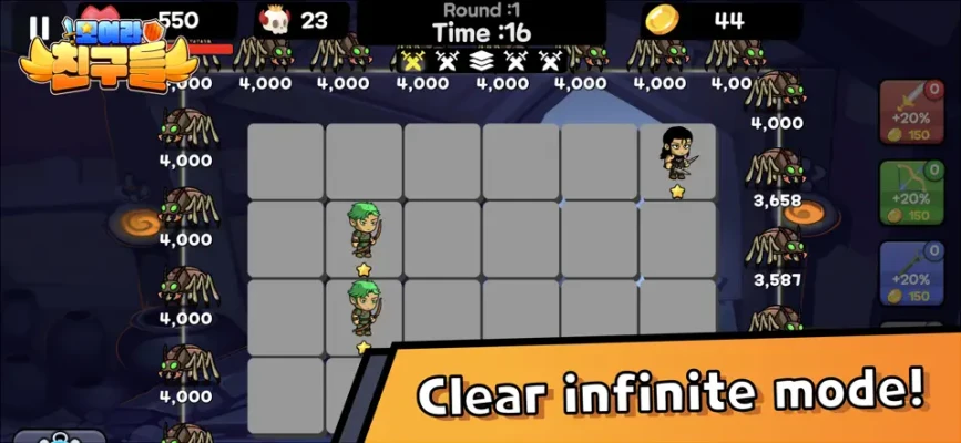 1Stop the flocking animals! "Gather Your Friends: Random Defense" is a strategic defense game designed for cooperative play with friends. In this game, players must collaborate with friends to fend off enemies while devising various battle strategies. Each player selects their own combat units and adjusts strategies to fit random situations. With each game progressing, players encounter different maps and enemies. These random elements make the game unpredictable, allowing players to experience new challenges constantly. "Gather Your Friends: Random Defense" emphasizes teamwork and strategic thinking, creating new battle experiences with friends!