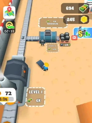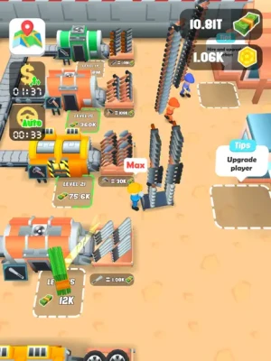 Operate a excavation company, start your machine, and collect it. Machish the collected ore and produce different products. Then sell them and use these income to continuously expand your factory.