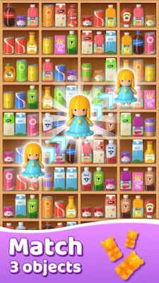 Match Cute Items: Each level starts with a shelf full of adorable items. Simply match three identical items to make them disappear and clear the shelf.