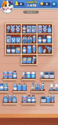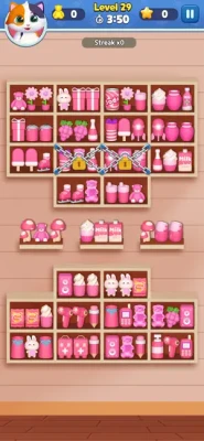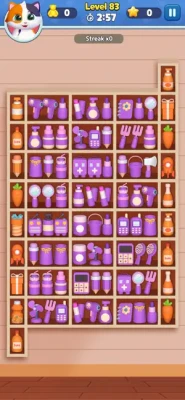 This game is about practicing your sorting and matching skills while having a blast. Whether you're organizing cute cat food, accessories, or a variety of adorable goods, each level brings more excitement and challenge. With every perfect match, you'll earn rewards that help you unlock new items and levels, making the game even more fun and rewarding!