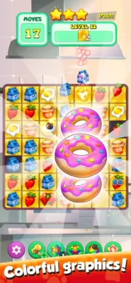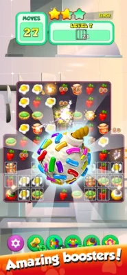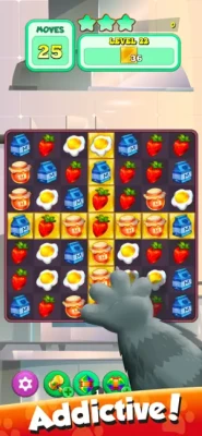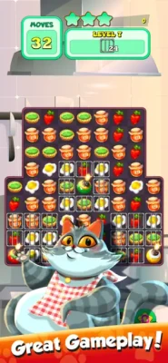 The game has a lot of levels. Match the food and create bomb exposition. Feed the greedy cat with all the tasty food. Maybe animals like more cookies and candies?