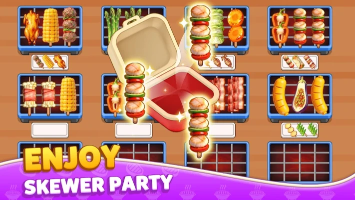Easy to Learn: Simply swipe to match three or more identical skewers on the same plate to clear them!