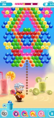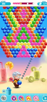 - Burst colorful bubbles by simply matching any 3 of them