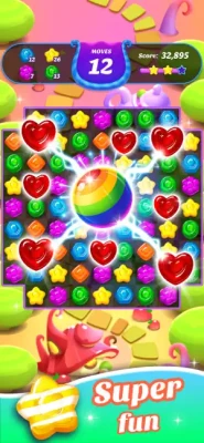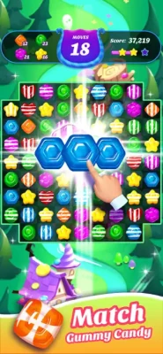 Spectacular Power-Ups: Create Gummy Rockets, Color Bombs, and Magic Wands to clear entire rows or specific colors.