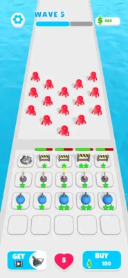 Merge and upgrade your turrets for a strong defense! How many waves of monsters will you destroy?