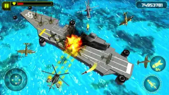 Bomber Jets are attacking the army concentrations and strategic targets; Enemy is racing towards you to blast your gunship battle helicopter; fighter gunship helicopters are battling for control over airspace; attacking aircraft are engaging in close air support against ground targets; the copters are flying against the buildings and nearby land targets; gliders, helicopters and super boss tankers are assaulting your land. You need to take charge to protect your base and rescue the civilian lands. Gunner troop missiles are fired to hit you! Ride in your Sky Copter and hit targets to finish this reign of terror. It is your ultimate duty to save your homeland! Fight for Honor, Dignity and Victory!!