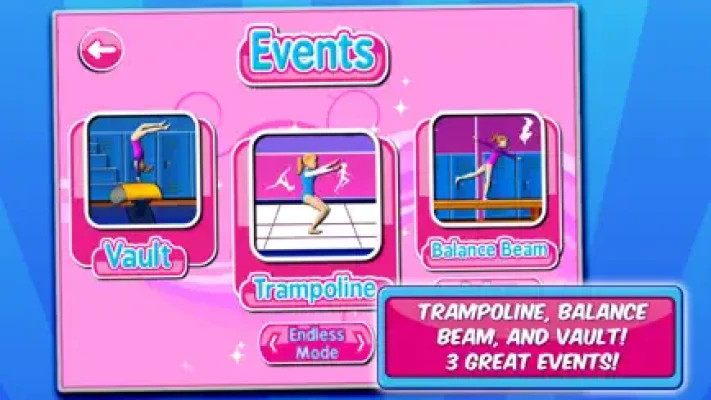 Welcome to Gymnastics Events. Learn the vault, trampoline, and balance beam. Compete and win a medal!