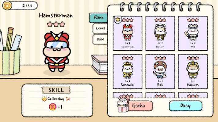 Decorate Hamster Town as you enjoy various episodes with your cute hamster friends.