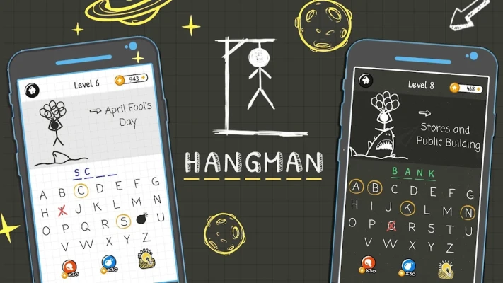 Hangman Words features various levels of word search and crossword puzzles, where you can showcase your spelling prowess in the hangman words game and save the hangman via word search. The 2 player games hangman gameplay is simple yet challenging - input the correct words quickly to help the hangman before it's too late.