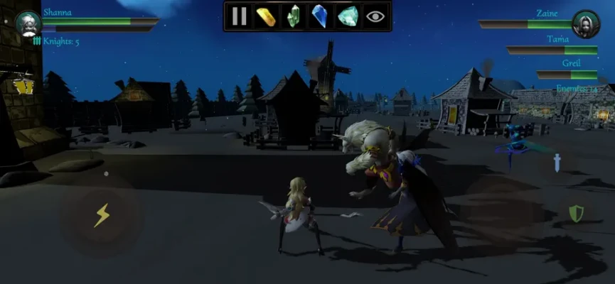 The game includes multiple heroes, knights, battle formations, evil lords, bone warriors, and beautiful environments to go into battle. Select your hero, customize it, strategize by selecting your Knights and battle formation, fight exciting battles, collect mystical stones, and defeat the master evil lord to liberate the Eclipse Islands.