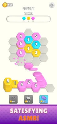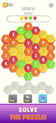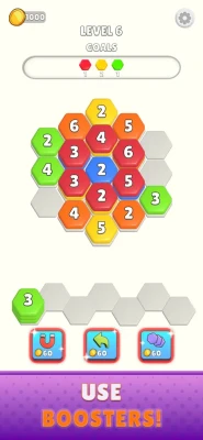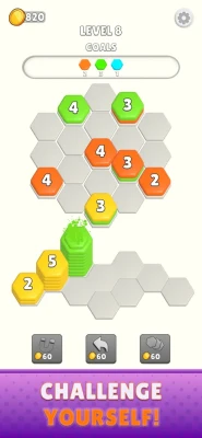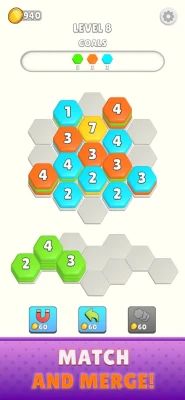 Match and Merge the hexas. Solve the puzzle. Match the same color hexas. Difficult puzzle levels. Tap and merge the same color of hexas to combine 10 or more in the deck. It is necessary to combine the hexas at the right time to pass the challenging puzzle levels. Levels must be passed before the deck area is filled.