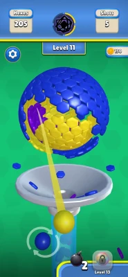 You have a cannon loaded with colored balls. Aim carefully and shoot at the matching colors on the sphere. When you make a hit, the hexes will shatter and fall into the funnel below, earning you points. But be careful! The sphere rotates with every impact, and you have a limited number of shots to clear the entire object. Plan your shots wisely to cause massive chain reactions! FEATURES SATISFYING PHYSICS DESTRUCTION Watch as the hex tiles crumble, fall, and bounce with realistic physics. Clearing the board has never felt this good. It is a perfect ASMR experience for your eyes and brain. COLOR MATCHING STRATEGY You need more than just aim; you need strategy. Match the ball color to the hexes on the sphere to destroy them. Look for weak spots to break off huge chunks of the sphere with a single well-placed shot. POWERFUL BOOSTERS Facing a tough level? Unlock and use explosive power-ups like the Bomb to blast a large area or the Rainbow Ball to match with any color. Use them at the right moment to clear the remaining hexes. HUNDRED OF 3D LEVELS Progress through a wide variety of levels, featuring different sphere patterns, colors, and challenges. Each level requires a new approach to solve the puzzle with your limited shots. RELAXING YET CHALLENGING Enjoy the colorful visuals and simple controls while training your brain. It is easy to pick up and play, but clearing the sphere with the perfect number of shots takes skill. Are you ready to smash some hexes? Download Hexa Shot now and start the ultimate blasting satisfaction!