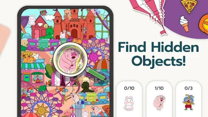 - Find all the hidden objects within a limited time to complete the level;