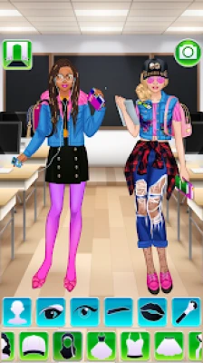 Choose makeup (for eyes, lips and cheeks) & high school clothes you want – nice shirts, unusual tunics, bright sneakers and ripped jeans. There are 400+ items of clothing of teenage style! Any cool it girl will find something stylish for herself in our dress up games free offline.