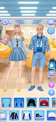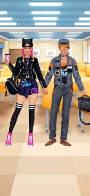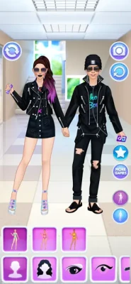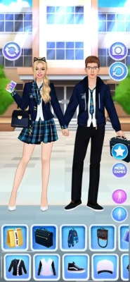 Dress up and make up a teenage girl for a romantic first date, then pick an outfit, a hairstyle and facial features for the boy, too. Or, if you feel more like it, style these cute young lovers for a typical college day: in high school uniforms, jackets, shirts and such. Give the schoolgirl a smart, geeky look, like they'd go into math or computers. Or pick a more formal style for an ambitious student type which plans a career in business. Or put together a cool glam look of a popular girl in the class, with trendy clothes, fancy hairstyles and unusual accessories worthy of a prom queen. Dressing up the boyfriend is as fun as the girlfriend with a stylish selection of garments. Design great outfits for the cute model and her crush.