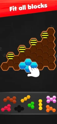 - Choose a hexa block from the options and move them to the board to fit in the grid