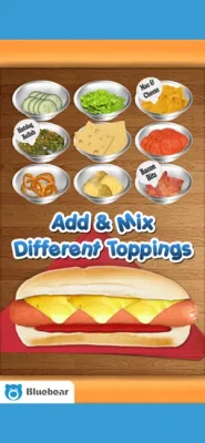 Hot Dog Maker! lets you make your own yummy Hot Dogs from scratch. You control everything, selecting bread, garnishing with sauces & adding toppings, making awesome combinations!