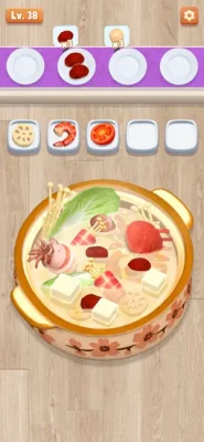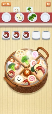 Unlock the secrets to hotpot mastery in this thrilling food game! Foodie players must strategically arrange three identical ingredients (meat, veggie, seafood) on the same plate to collect them. Tap or drag items on the screen to line up three or more matching items in captivating food games, eliminating them and clearing the pot. Triumph at each level by collecting all the food in this thrilling sort games challenge!