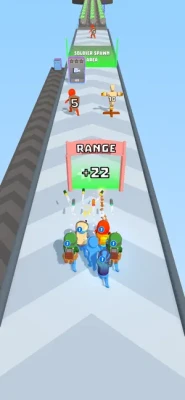 Collect all the cards and watch them transform from card to soldier in the soldier spawn area. Fill the evolve bar on the left by shooting the scarecrows in front of you and make the commander evolve!