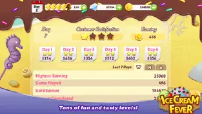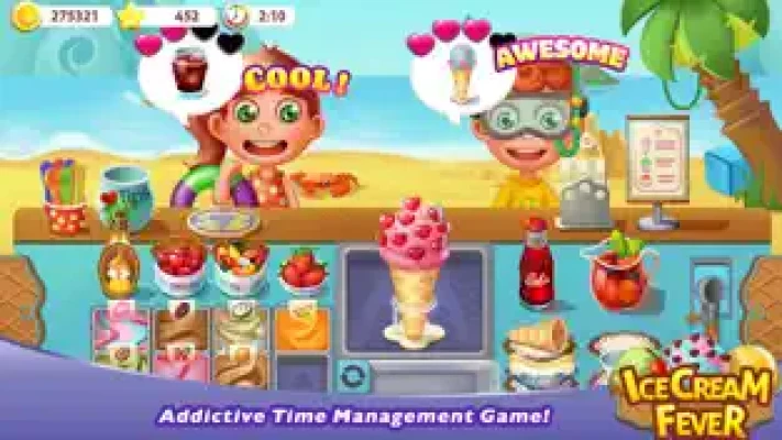 Start your own new ice cream business now! Work as a chef in the lovely beach and prepare super smooth and creamy ice cream cones for yours customers. Mix and match 40 different ice cream favors and toppings to make hundreds of different yummy ice cream treats! Upgrade your equipment, buy bigger ice cream stands, and invest in advertisements to create the biggest ever ice cream sensation in town! Unlock new ice cream favors as you progress to produce an even greater variety of treats! Collect tons of tips for excellent service and make those profits!