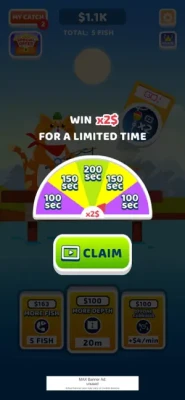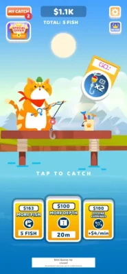 - Idle Gameplay: The fishing rod earns you money while you are away!