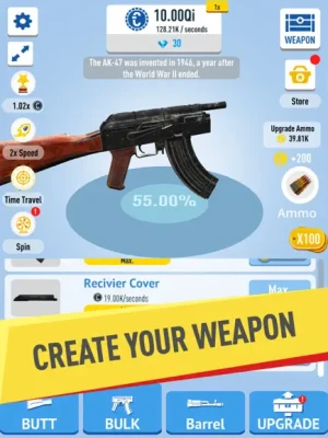 With the Idle Guns Factory clicker game, you will have a unique chance to sneak into the arms warehouse and get the vibe to become a real gun builder of various guns classes!