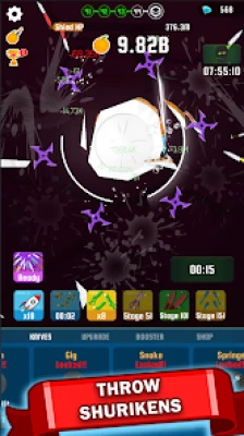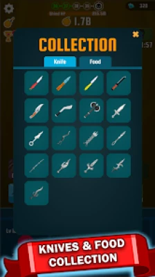 Idle Knife: Slash The Fruits also has many special skills to use. Each special knife has a its own skill. The Big Knife will deal a lot of damage. The Fork can cut the fruit in a rectangle shape. Chainsaw can cut deep in the fruit. Scissors can cut the fruit multiple times. Shuriken can cut the fruit from different angles. The ultimate Four Knives can slash the fruit in a way out of your imagination!