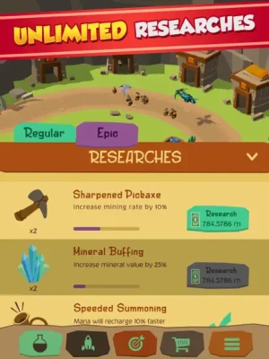 Let’s grow rich by tapping as fast as you want to in new idle games of 2021. Idle tycoon Summon dwarfs by tapping on screen which will mine gems so that you will transport into city to earn idle profit of miner idle games and become mine tycoon of tycoon games. Research more to be industry tycoon and build away your gems empire by playing Miner Empire Idle Clicker Game. Build away mining system and invest into resources to gain profit of business games and become a mining tycoon to simulate your world in tycoon games.