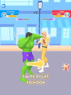 For the ultimate fighting challenge. You'll attend a fighting competition and compete against other players to see who is the strongest. Your timing skills and strength will be put to the test as you try to hit your opponent with the knockout blow. Can you unlock your special power, the Golden Fire Fist, and become the true Fighting King?