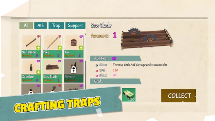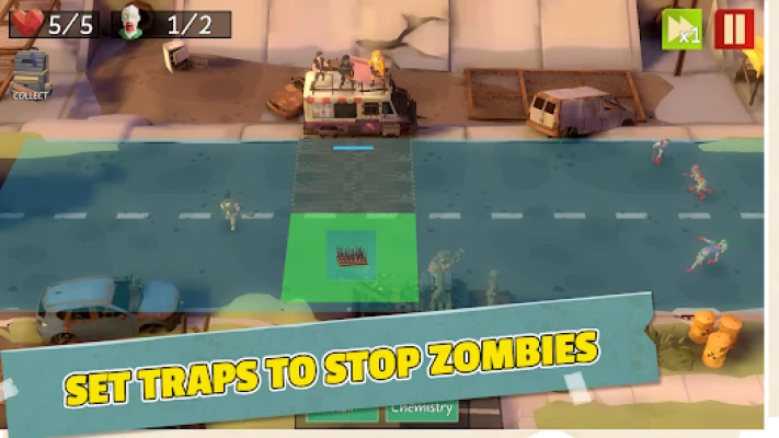 The scene of the game is a world has ended... not dead ahead or dead astern, you are in a zombie warfare. Not a Tower Defense but you also have a Defense Zone. Build a strong team according to your strategy, gather a lot of materials to crafting traps, set traps to stop zombies. Fight to defend your city and explore new areas.