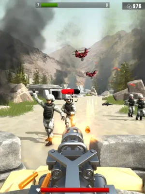 Enemy troops such as infantry, helicopters, tanks, warplanes and drones are coming for you! Jump on the machine gun and shoot them all! No World War I (WW1) or World War II (WW2) old fashion weapons here, you handle brand-new modern weapons to shoot enemies.
