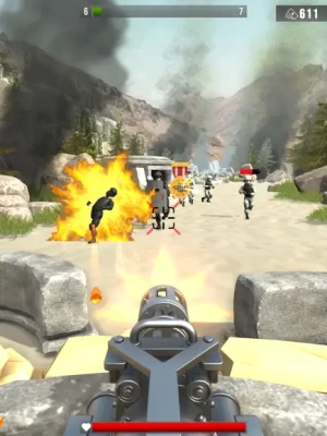 You’re not doing war alone, your squad is here to help you: Sam has an RPG rocket launcher to deal high damage to military vehicles, and Ryan, our deadly sniper, will shoot at high range on the open battlefield. You are in charge of the machine gun to clear the battlefield, highly addictive and enjoyable!
