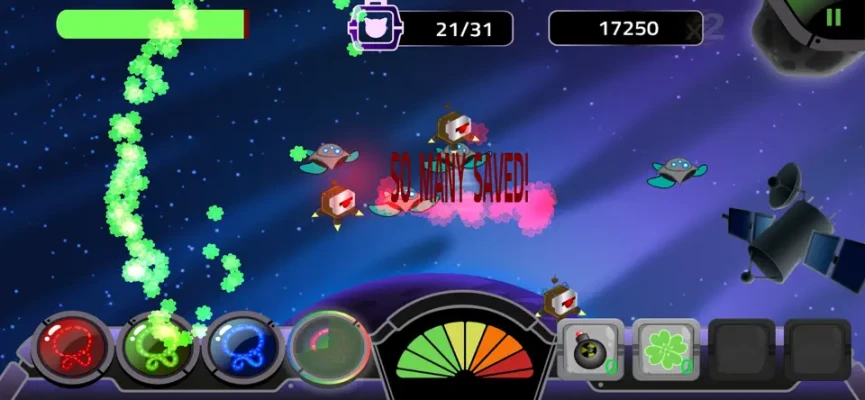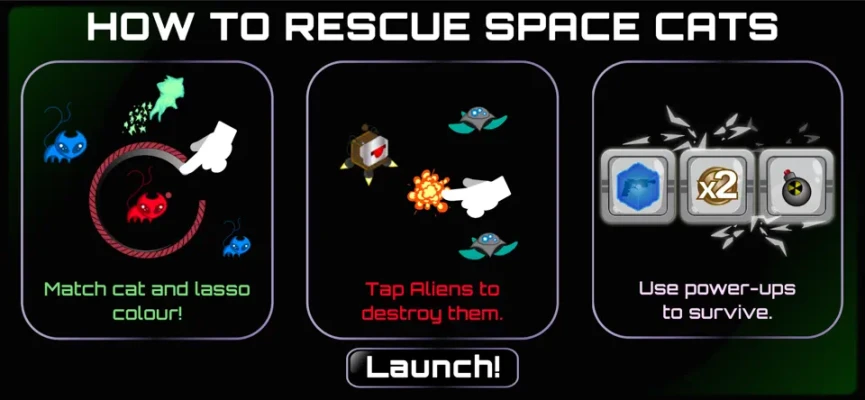 In space you can hear them...MEOW! Rescue space cats and battle aliens in this fast paced indie arcade game. Upgrade your ship and use power-ups to climb the high scores! Can you discover all the secret power-up combos?