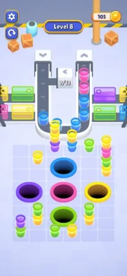 Get ready for a vibrant puzzle challenge! In Jar Drop, your goal is simple yet addictive: tap to open the right colored holes and drop the jars into them. Watch as the jars fall onto the conveyor belt and roll toward the giant water dispensers. Match the colors correctly and fill them up to win!