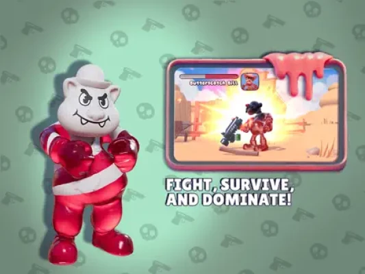 Engage in turn-based gummy duels using a hilarious variety of wacky weapons. Unlock new gummy gunslingers and build your ultimate sugary posse. Customize and upgrade your characters to gain a strategic edge in battle. Duel across mouthwatering, dessert-themed arenas like chocolate canyons and gingerbread gulches. Simple touch controls make jumping into the action quick and easy. Vibrant cartoon visuals and fast-paced action ensure a fun experience every time.