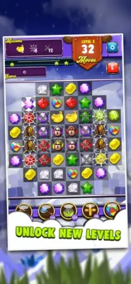 - Match 3 or more identical jewels on a column or row to destroy them.